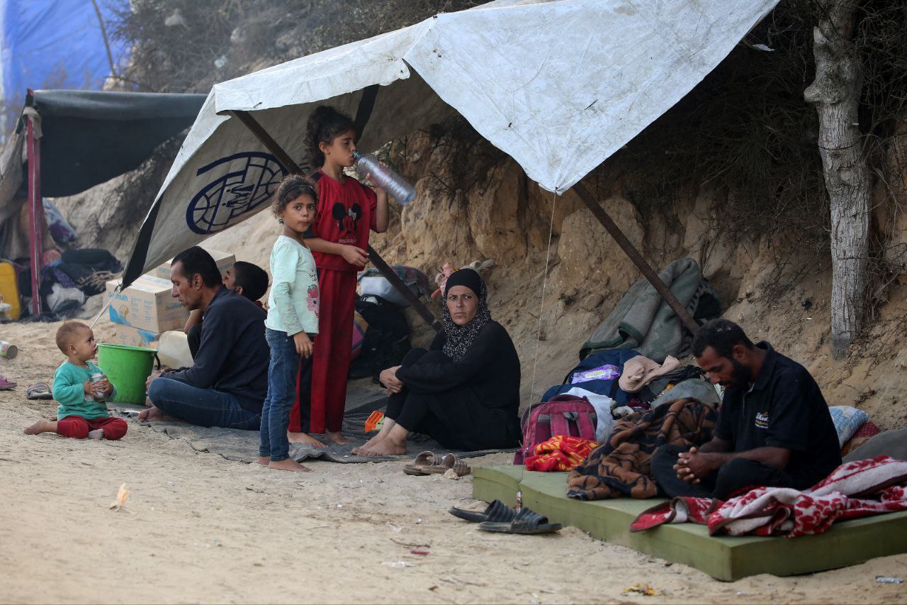 Le famiglie sfollate si trovano in condizioni difficili dopo essere state costrette a fuggire dalla città di Gaza verso il campo profughi di al-Nuseirat, nella parte centrale di Gaza, a seguito della recente offensiva di terra israeliana.
