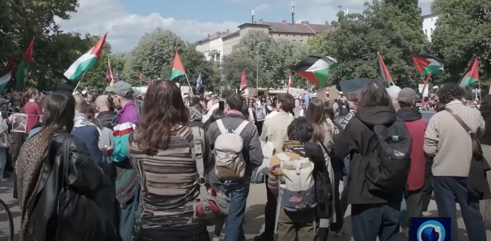 I manifestanti hanno scandito slogan come “Libertà per la Palestina”, “La Germania finanzia, Israele bombarda”, “Israele è uno stato terrorista” e “Fermiamo il genocidio”.