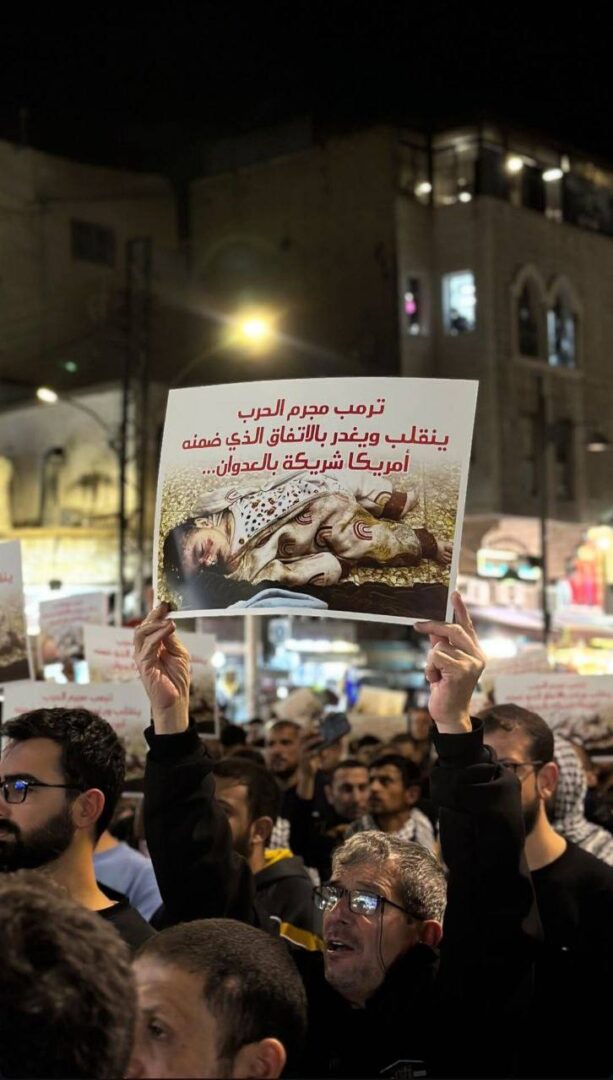 I dimostranti hanno issate bandiere palestinesi e cartelli con la scritta “Giù le mani dalla Cisgiordania” e “Gloria ai martiri, libertà per i prigionieri”, prima di essere attaccati dalle forze di polizia.