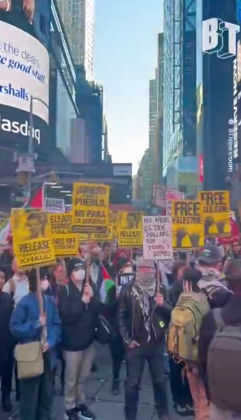 I partecipanti alle proteste hanno chiesto il divieto di armare Israele mentre commette un genocidio a Gaza, nonché il rilascio dello studente palestinese Mahmoud Khalil.