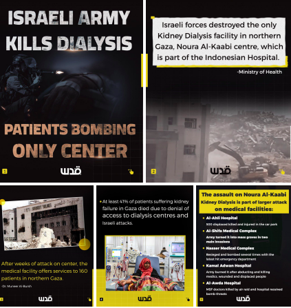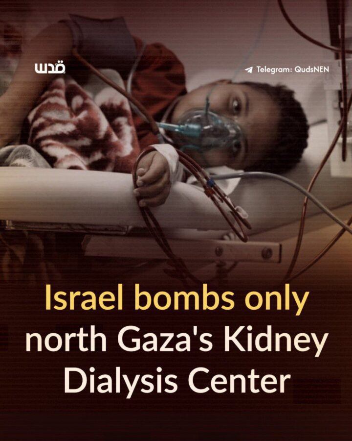 Dall’inizio della guerra, Israele ha bombardato e bruciato 36 ospedali nella Striscia di Gaza, nonostante tali attacchi siano considerati crimini di guerra ai sensi della Convenzione di Ginevra del 1949. L’ultimo attacco a una struttura medica è la distruzione del Centro di dialisi di Noura Al Kaabi.