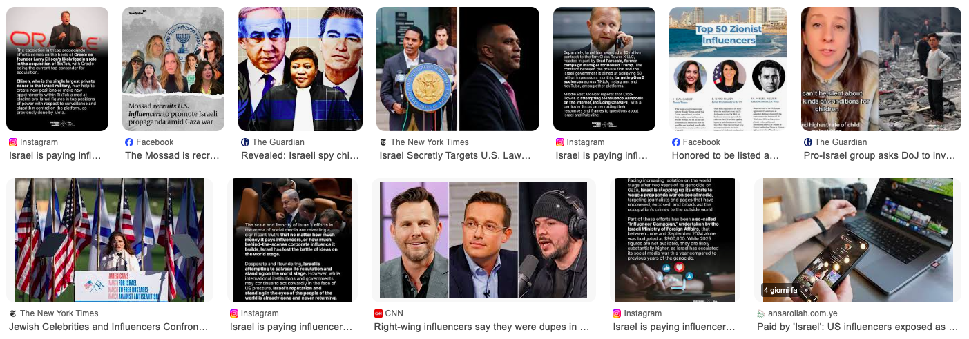 Al Mayadeen. Grupos de monitoramento pedem transparência após revelações de que influenciadores dos EUA teriam sido contratados secretamente para promover conteúdos pró-Israel sem declarar a natureza desses conteúdos.