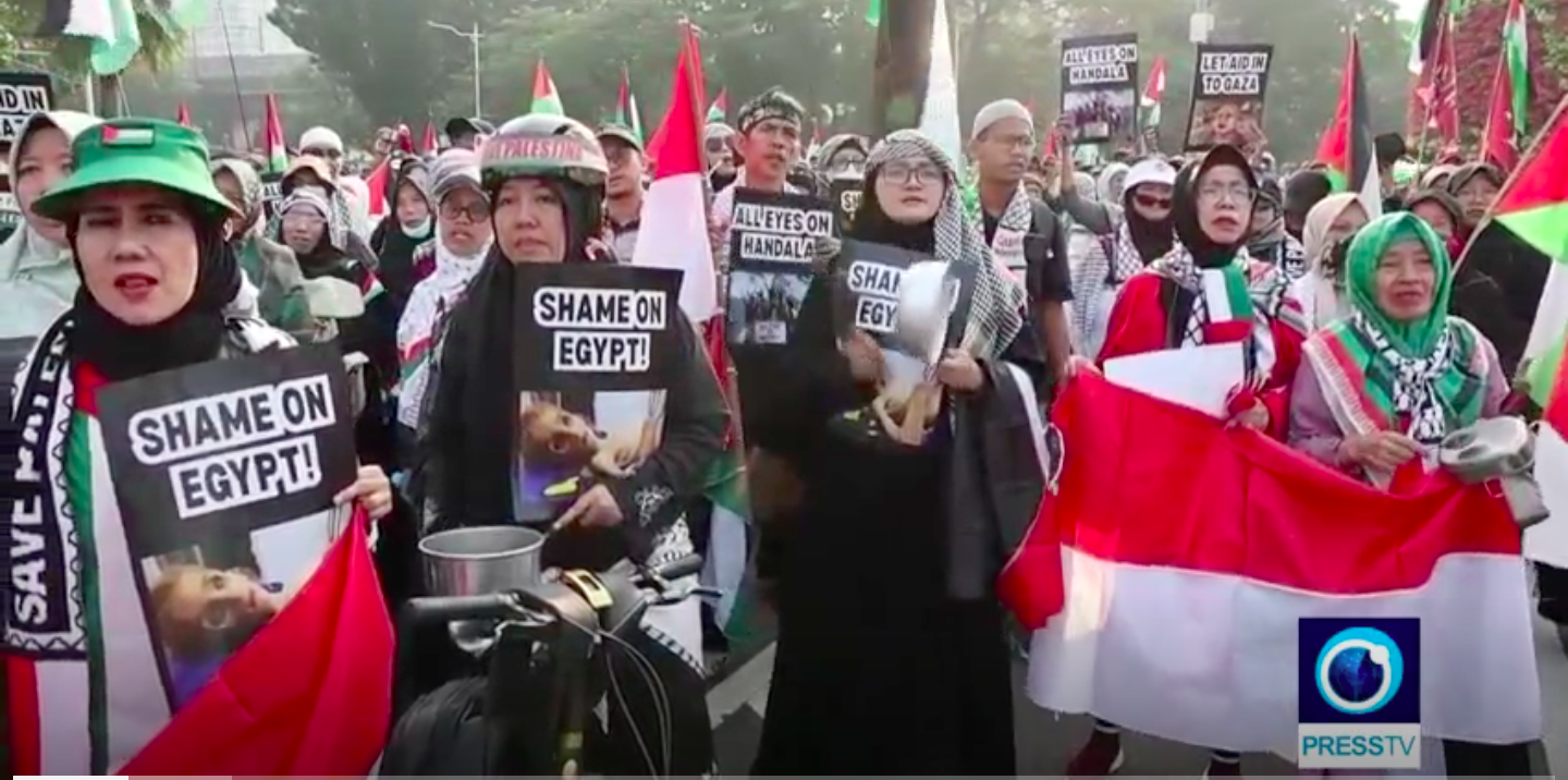 Giacarta – Presstv.ir. Centinaia di manifestanti indonesiani hanno marciato e si sono radunati domenica davanti all’ambasciata degli Stati Uniti per esprimere la loro preoccupazione riguardo alla crisi alimentare a Gaza.