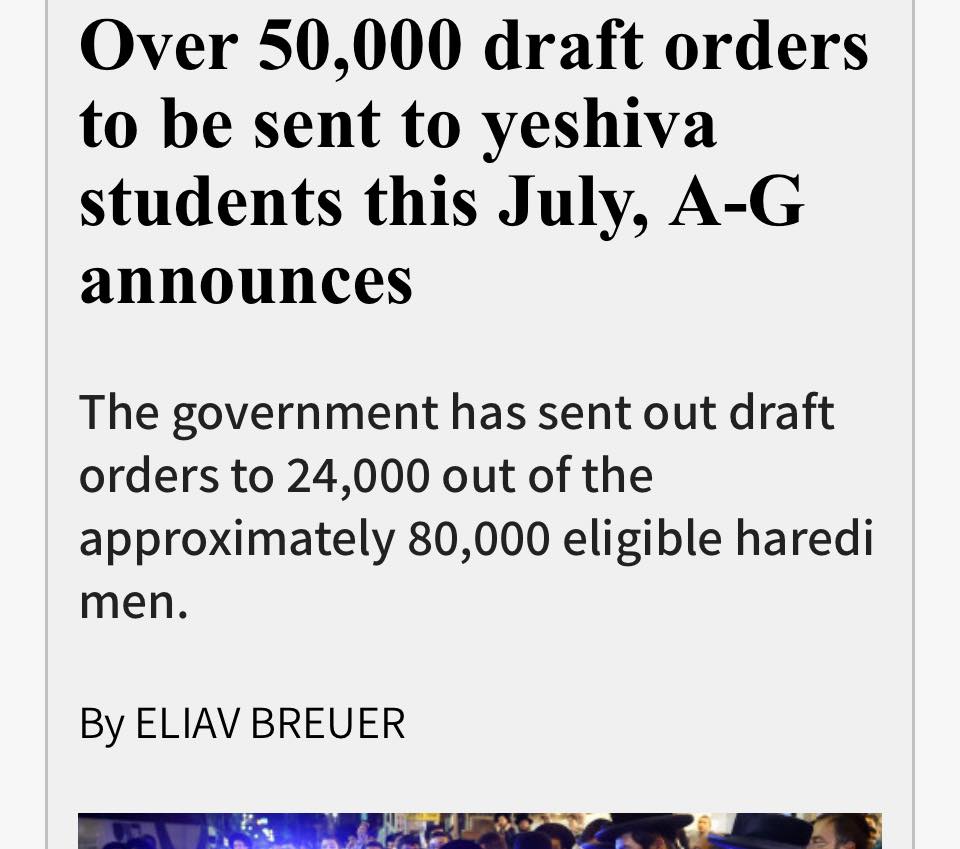 La comunità ortodossa è un peso gravoso per la società israeliana. Il suo contributo alla società israeliana è profondamente negativo. La maggior parte di loro vive di sussidi statali e usufruisce del servizio sanitario israeliano. Sono lontani dalla vita e dalle professioni moderne, il loro contributo alla produttività e ai servizi è ben al di sotto dello zero. Inutile dire che il loro contributo alla difesa israeliana è pari a zero. Eppure, il loro tasso di natalità è molto alto sotto ogni punto di vista. Alcuni studiosi israeliani hanno previsto che Israele non potrà sopravvivere alla sua comunità ortodossa. Alla fine imploderà a causa di questo settore “parassitario” in enorme crescita. Come se questo non fosse già abbastanza preoccupante per la maggior parte degli israeliani, anche i politici ortodossi sfruttano il loro potere politico e l’attuale dibattito sul servizio militare ne è un esempio.