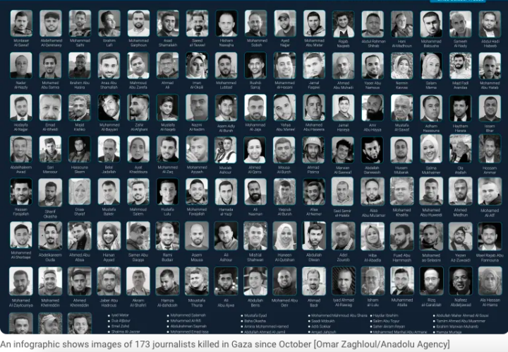 Ramallah. Il Sindacato dei giornalisti palestinesi ha riferito domenica che, nel 2024, 193 giornalisti sono stati uccisi dalle forze di occupazione israeliane nella Striscia di Gaza.