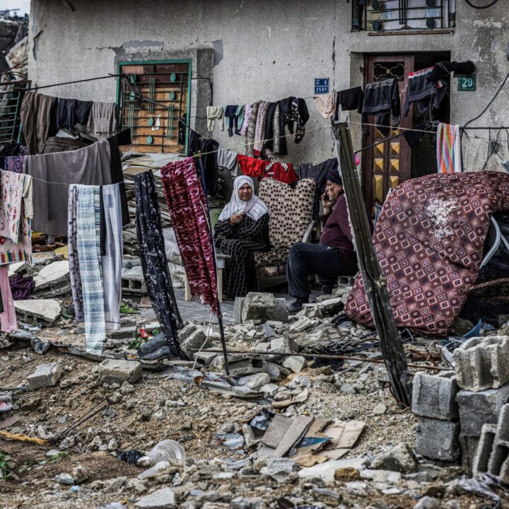 Scene della devastazione lasciata dall’occupazione israeliana nel campo profughi di Jabalia durante la guerra di sterminio di Gaza.