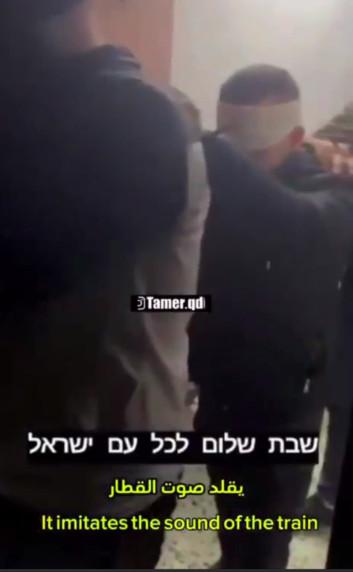 Sadismo psicopatico. I soldati dell’occupazione israeliana hanno pubblicato un video in cui cantavano “The Train Moves On” mentre arrestavano un gruppo di palestinesi della Cisgiordania, tra cui un bambino, e li costringevano a camminare con le mani ammanettate e gli occhi bendati.