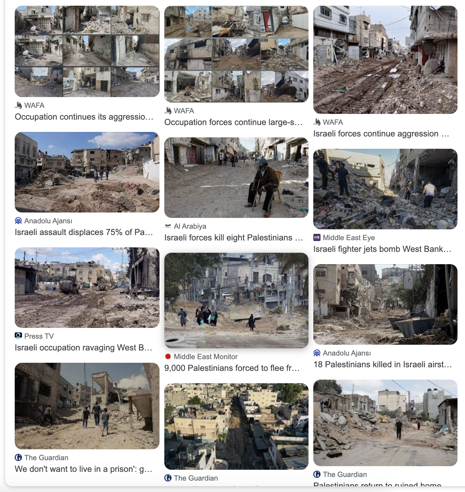 L’aggressione ha causato ingenti distruzioni alle infrastrutture, tra cui case, negozi e veicoli, che sono stati completamente e parzialmente demoliti, bruciati, vandalizzati, saccheggiati e rubati. 396 case sono state completamente distrutte e 2.573 parzialmente, nei campi di Tulkarm e Nur Shams, oltre a bloccare i loro ingressi e i vicoli con cumuli di terra.