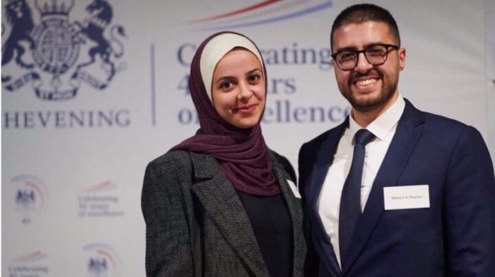 (Il dott. Maisara Azmi Al Rayyes e sua moglie Laura, borsisti Chevening, via social).