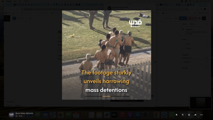 Gaza. Nonostante la legge israeliana sulla censura sui giornalisti incorporati nelle forze israeliane a Gaza, un fotoreporter israeliano ha caricato numerosi video che documentano le forze israeliane a Gaza che istituiscono un campo di detenzione illegale in uno stadio.
